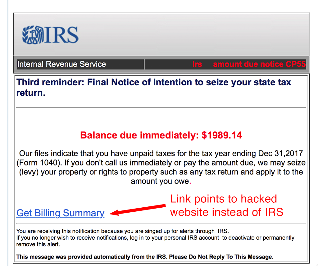 It looks pretty official, doesn’t it? One’s first reaction is to click on the Get Billing Summary link. That link however points to: